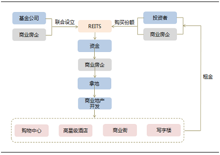 在REITS存在的情况下,商业地产行业的运转将出现精细化合作,不同风险偏好的资金将会流向商业地产运作的不同环节,进而实现资金的风险偏好与投资收益相匹配。追求高投资回报的房企将会负责商业地产的前期开发以及培育,然后将培育成熟的商业物业出售给REITS,实现退市套现,迅速回笼资金,提高了IRR,并且缩短了投资回报周期,而追求稳健收益的投资者将会通过持有REITS份额获得经营商业物业过程中的持续稳定的租金分红收益。