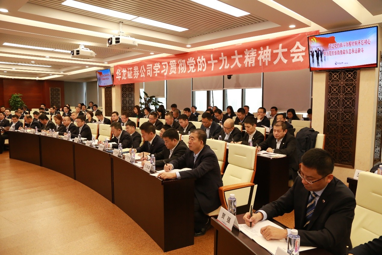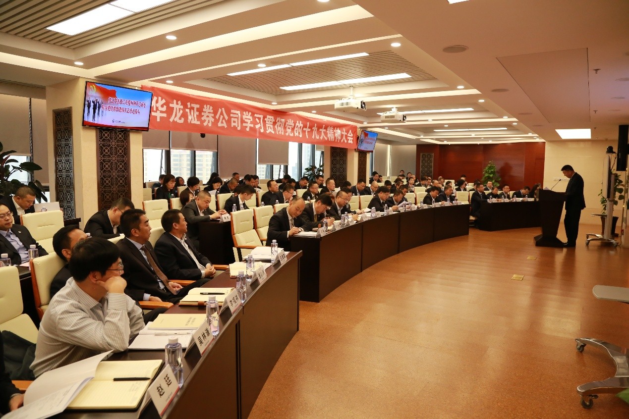 莅临会议的中国证监会甘肃监管局领导针对十九大报告也畅谈感想,希望华龙证券公司加强依法全面从严管理,加强合规风控队伍建设,做好各项风险的识别、评估、处置工作,坚决守住合规风控底线,杜绝发生风险事件。之后,公司党委委员结合各自分管业务,畅谈学习党的十九大报告心得体会。合规风控部同事为参会人员进行法规解读、行业案例剖析,引人深刻反思。参会党员干部表示,要认真学习宣传贯彻党的十九大报告精神,用习近平新时代中国特色社会主义思想武装头脑,不忘初心,牢记使命,坚守合规底线,在公司党委正确带领下,把十九大报告精神与公司新一轮战略规划的贯彻执行结合起来,为实现公司成功上市而努力,在新时代开创公司发展新局面!