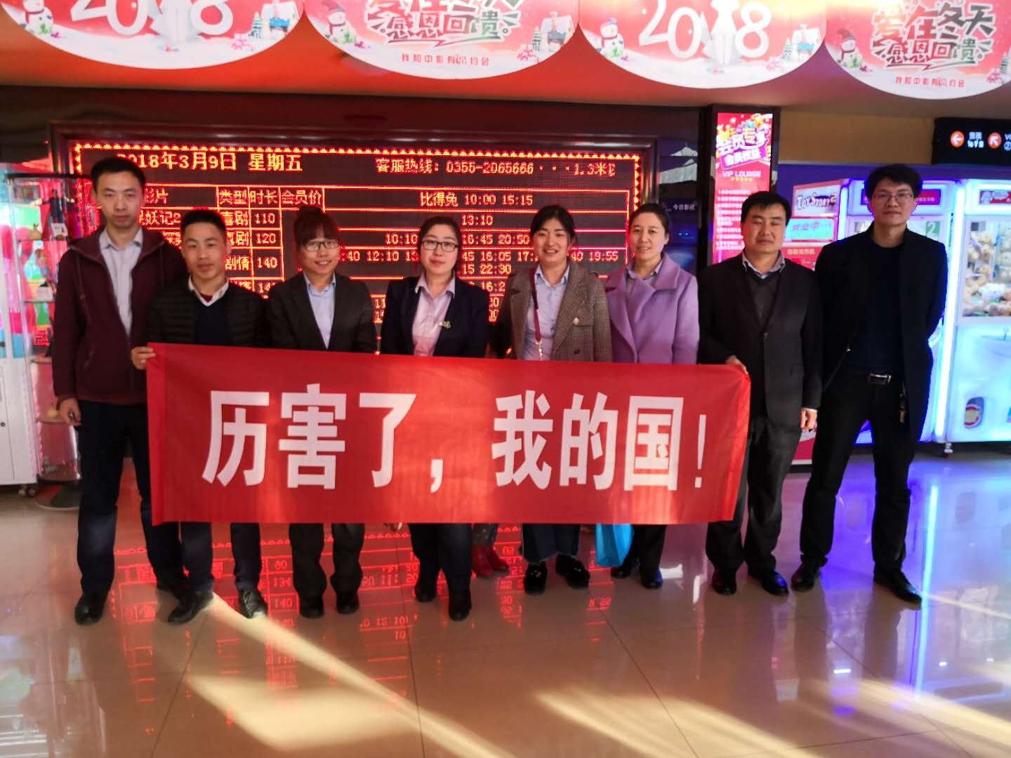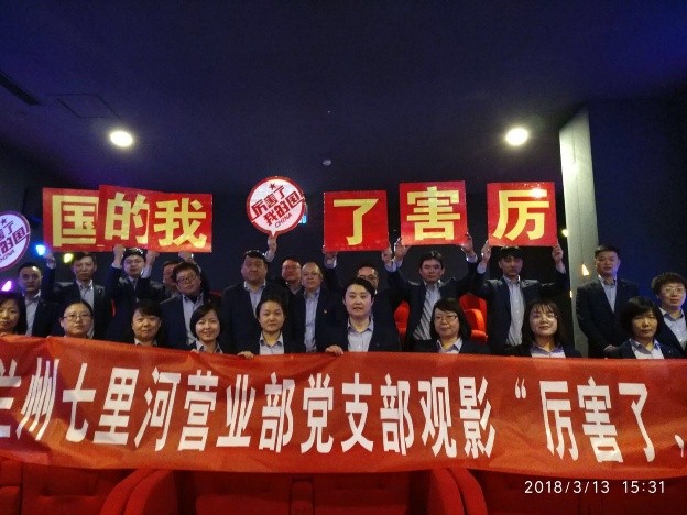 公司各地分支机构积极响应,组织开展观影活动。公司机关全体人员于3月9日、10日分批、分次在兰州华联影城观看《厉害了,我的国》。一起见证祖国发展的辉煌成就,一同感受新时代的大国豪情。
