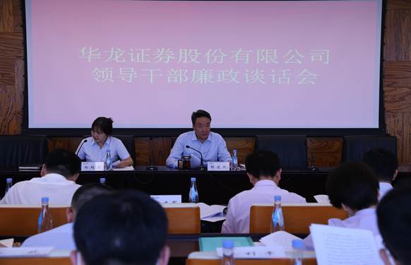 9月6日下午,华龙证券召开领导干部廉政谈话会。党委书记、董事长祁建邦作廉政谈话,纪委书记杨艳丽主持会议。公司领导班子成员、子公司负责人、部门中层副职以上管理人员、兰内营业部负责人现场参加会议,兰外分支机构负责人视频参会。