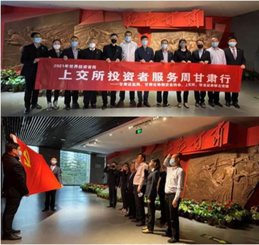 活动期间,华龙证券联合上交所、中证中小投服中心共同走进甘肃省博物馆开展主题党史学习教育活动。参观结束后,全体党员重温入党誓词,感悟党的光辉历程,坚定入党初心,表达了为党的事业毕生奋斗的信心和决心。