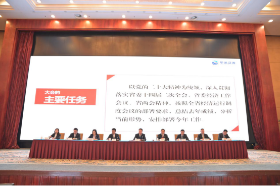 会议深入学习贯彻落实党的二十大精神,全面贯彻落实中央经济工作会议精神,认真贯彻落实省委十四届二次全会、省委经济工作会议、省“两会”精神和全省经济运行调度会议精神,总结2022年经营工作,分析形势,剖析问题,安排部署2023年重点工作。2022年,华龙证券坚持以习近平新时代中国特色社会主义思想为指引,坚决贯彻落实省委省政府决策部署,攻坚克难促改革,提升能力强服务,尽心竭力谋发展,多措并举防风险,各项工作取得了积极突破。