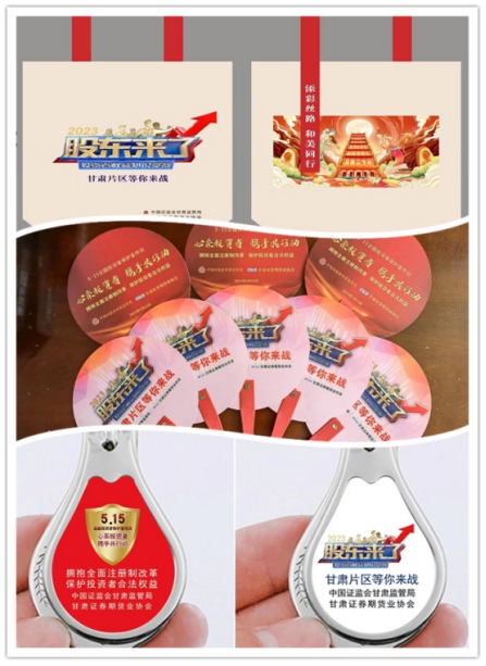 物料继后,制作多种投教产品。印有5.15投教主题和《股东来了》元素的文化扇、指甲刀、扑克牌、环保袋等实物投教产品,亲民而又实用,通过贴近生活、寓教于乐的形式完成投资理念与投教知识输出。